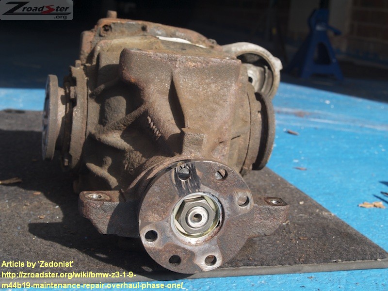When looking at the Propeller Shaft End of the Differential you will notice that there are two holes in the joining flange of the Differential, in order to disconnect the Propeller Shaft from the Differential put a thin punch or similar (I used a screw driver) trough on of the holes and gently tap until the Propeller Shaft splits from the Differential.