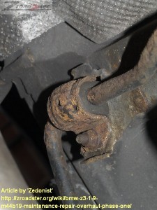 5) Repeat for the opposite side, you can now remove the Rear Anti Roll Bar complete with Drop Links, Note the worn bushes on the drop links: